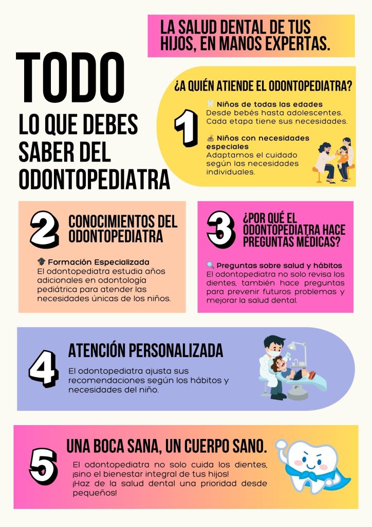 El trabajo del odontopediatra va más allá de cuidar los dientes; se trata de ofrecer una atención integral que ayude a los niños a tener una salud bucal adecuada a lo largo de su crecimiento. Al hacer preguntas sobre hábitos, salud general y desarrollo, el odontopediatra puede ofrecer una atención más completa y preventiva, asegurando que los niños crezcan con una sonrisa sana y evitando problemas dentales a largo plazo. ¡No subestimes la importancia de las visitas periódicas al odontopediatra!